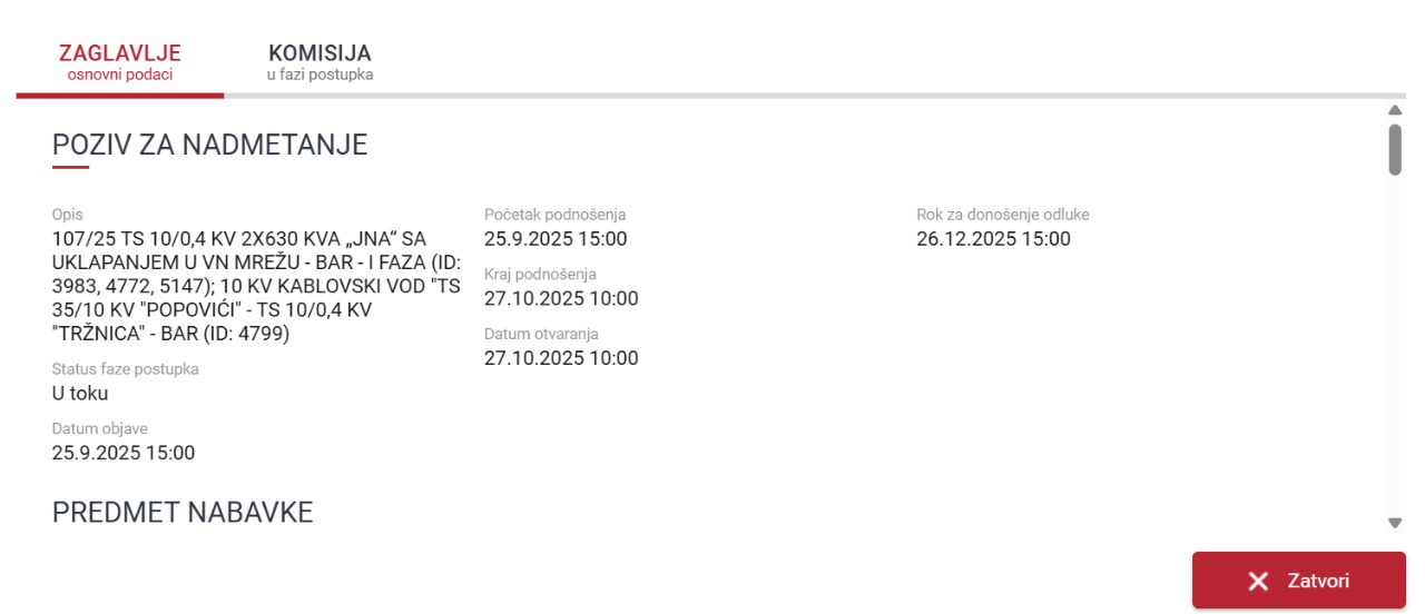 Detalje i tok tendera možete pogledati na zvaničnoj vebstranici Crnogorske elektronske javne nabavke.